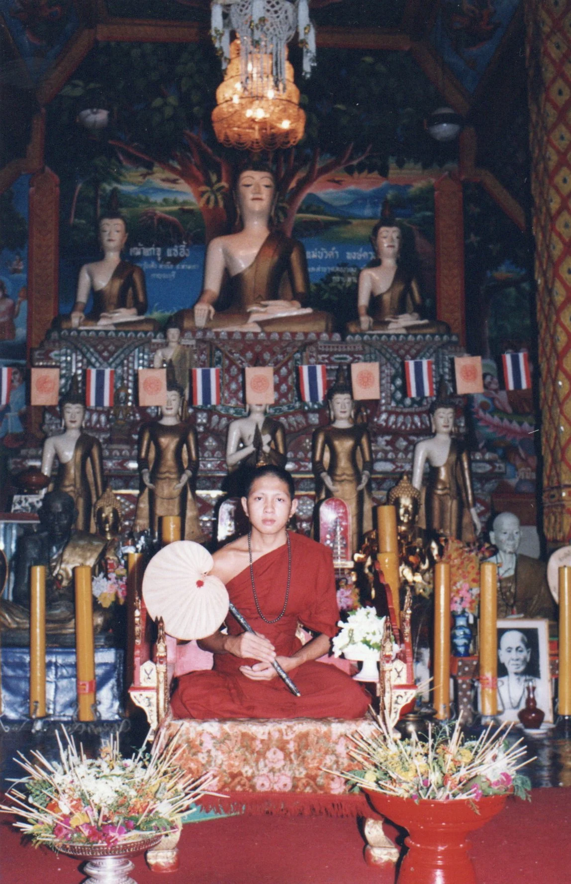 ครูบาเรียนที่โรงเรียนสารภีจบแล้ว ก็ได้บวชเป็นสามเณรเมื่อวันที่ 6 เมษายน พ.ศ. 2541 ณ วัดชัยมงคล ต.ประตูป่า อ.เมือง จ.ลำพูน ขณะที่มีอายุ 17 ปี