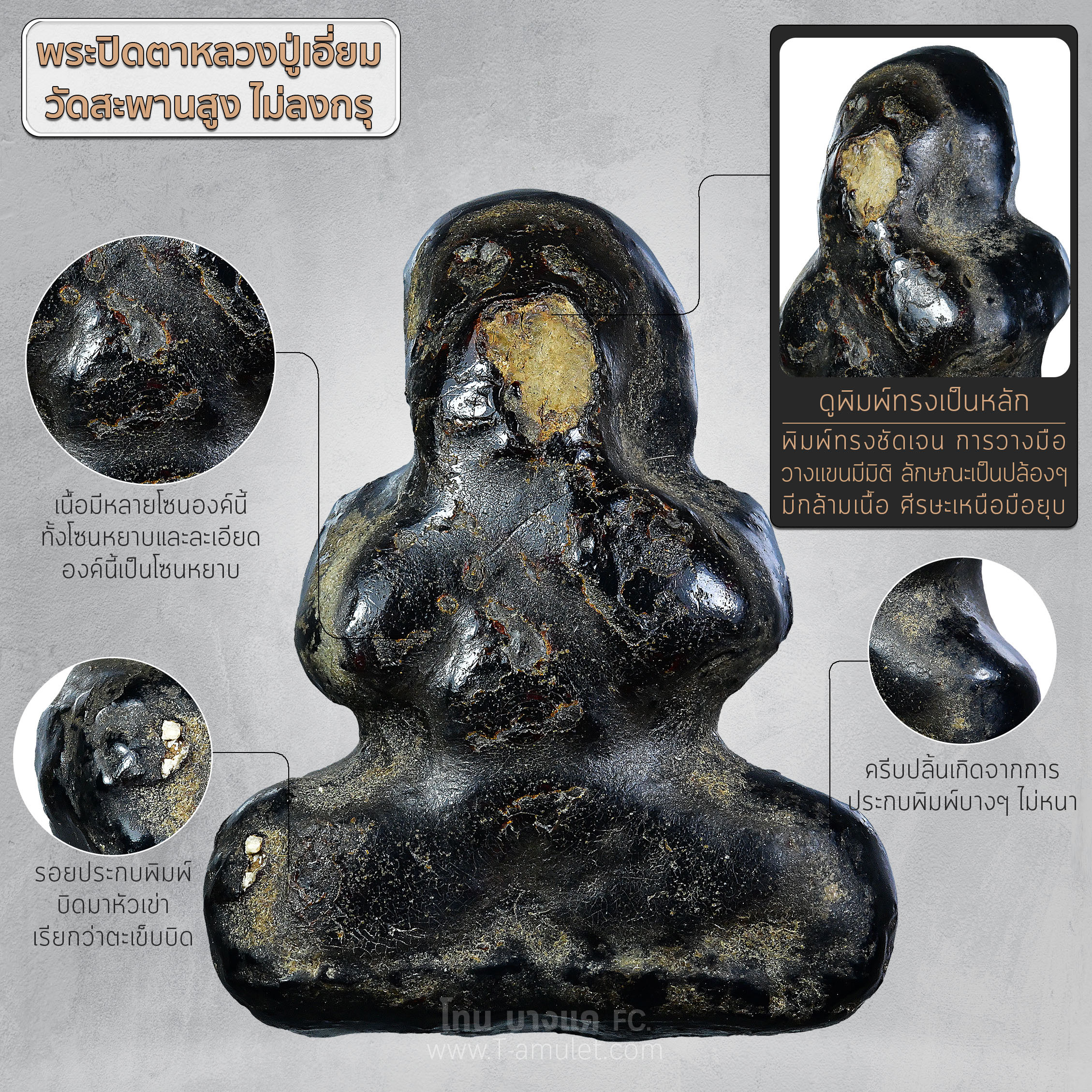 พระรุ่นนี้จะมี 2 แบบคือแบบลงกรุและไม่ลงกรุ วันนี้ผมเอาปิดตาหลวงปู่เอี่ยมวัดสพานสูงแบบ ไม่ลงกรุ มาสอนดูหลักการพิจารณาแท้หรือไม่แท้ครับ องค์นี้ที่ผมนำมาให้ชม เป็นพิมพ์เดียวกันกับแบบลงกรุเพียงแต่ไม่ได้ลงกรุเนื่องจากไม่ปรากฎคราบฟองหรือคราบกรุ