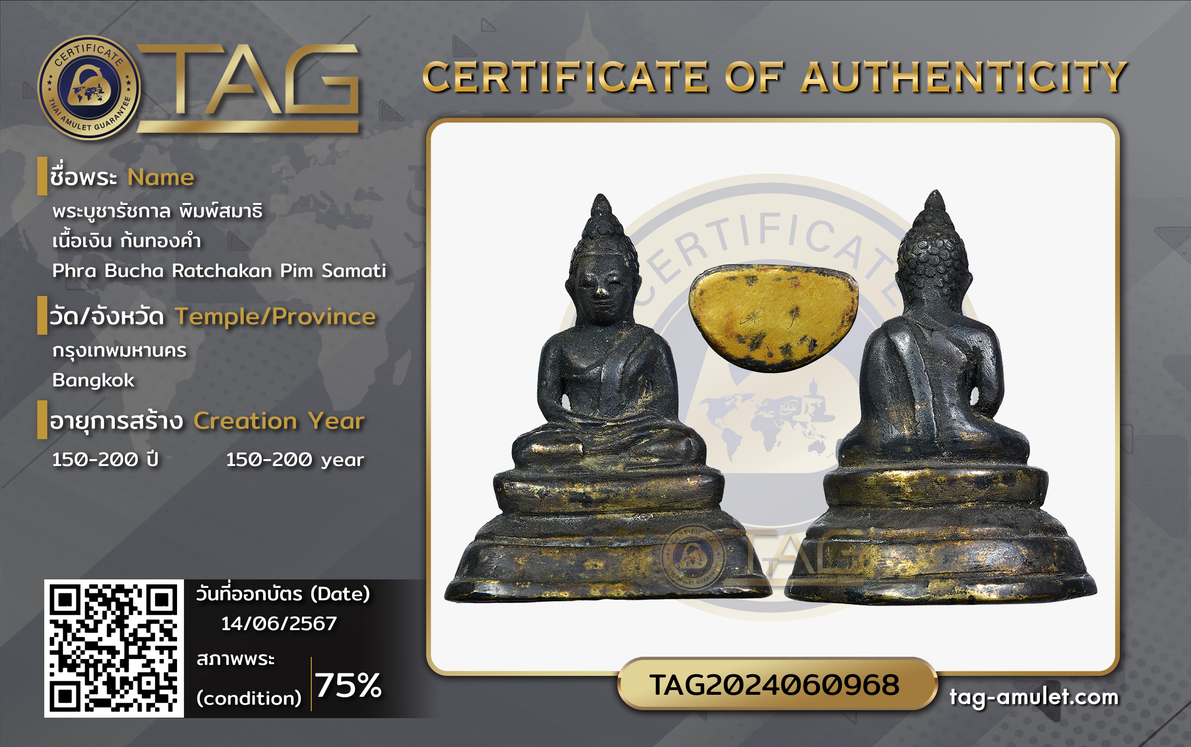 พระบูชารัชกาล พิมพ์สมาธิ เนื้อเงิน ก้นทองคำ กรุงเทพมหานคร