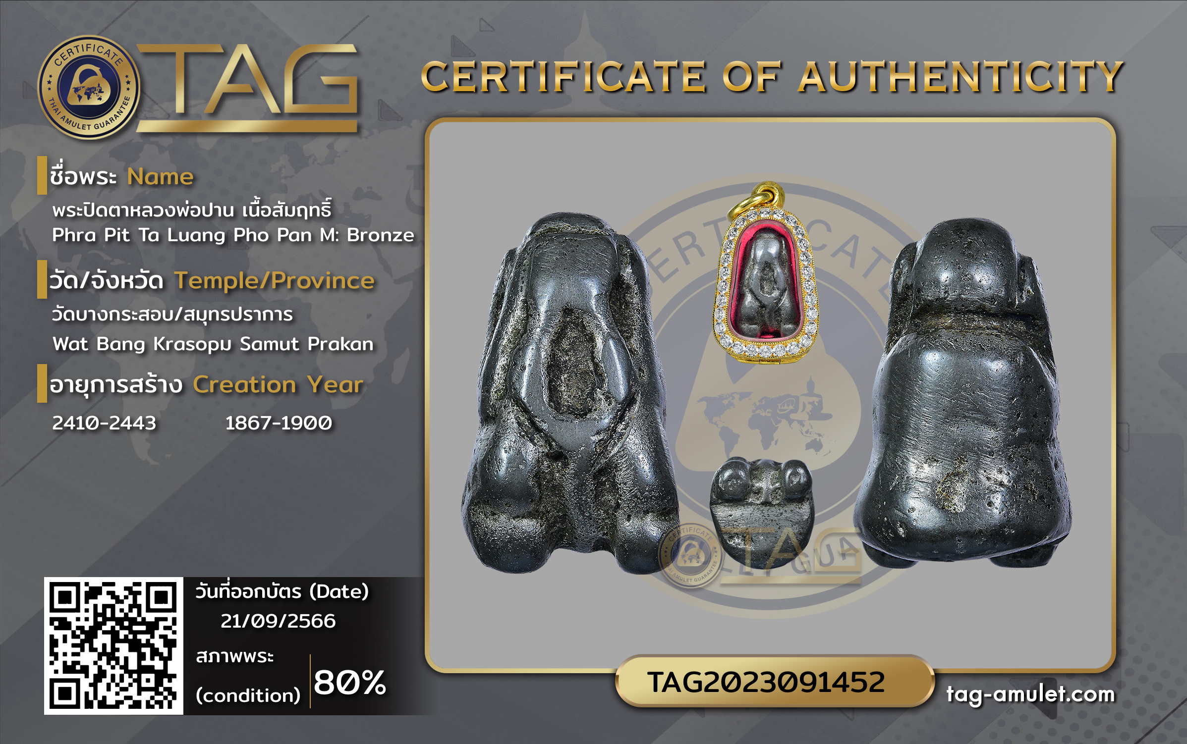 พระปิดตาหลวงพ่อปาน เนื้อสัมฤทธิ์วัดบางกระสอบ จังหวัดสมุทรปราการ ปี2410-2443