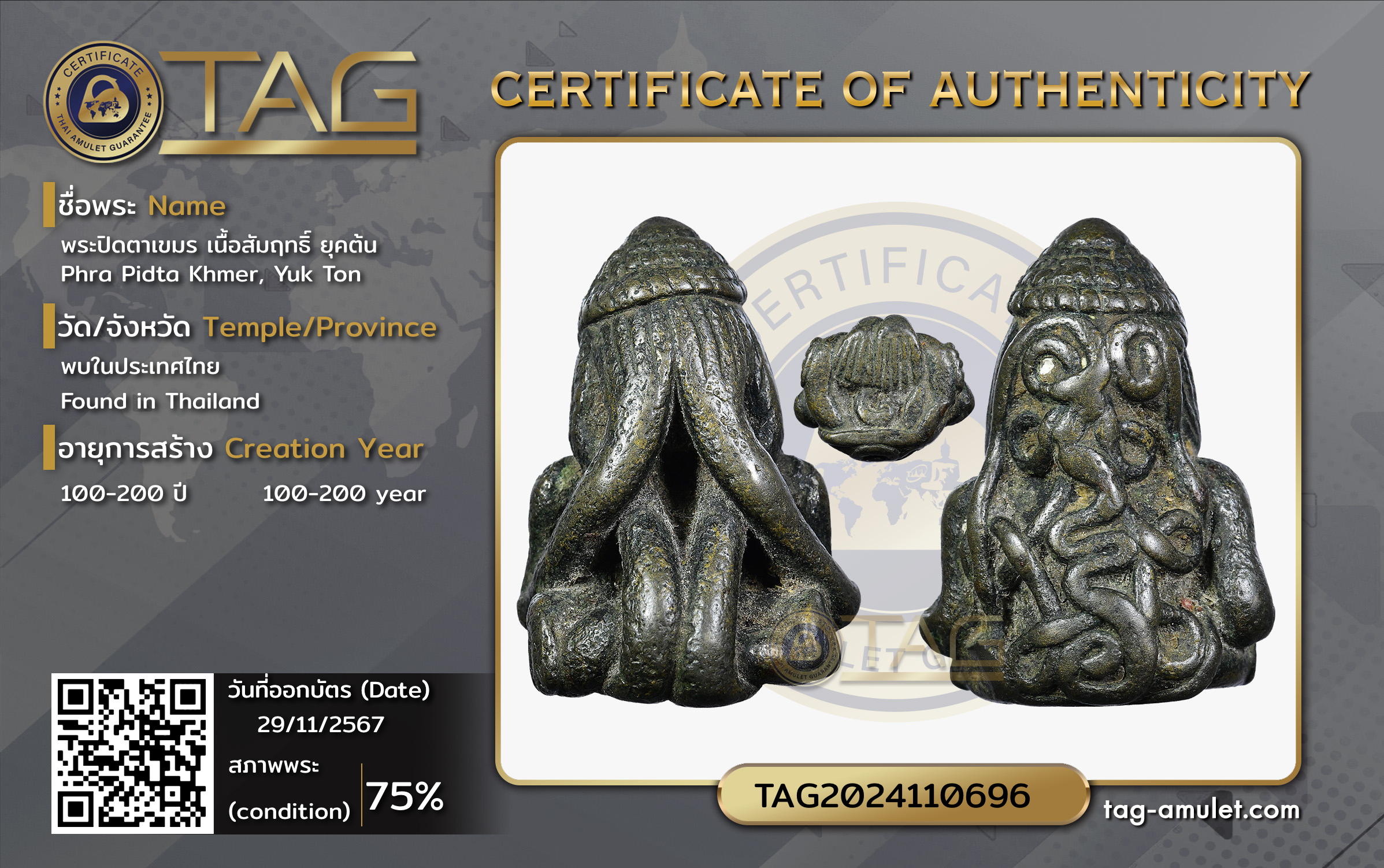 พระปิดตาเขมร เนื้อสัมฤทธิ์ ยุคต้น ( พบในประเทศไทย 100-200 ปี )