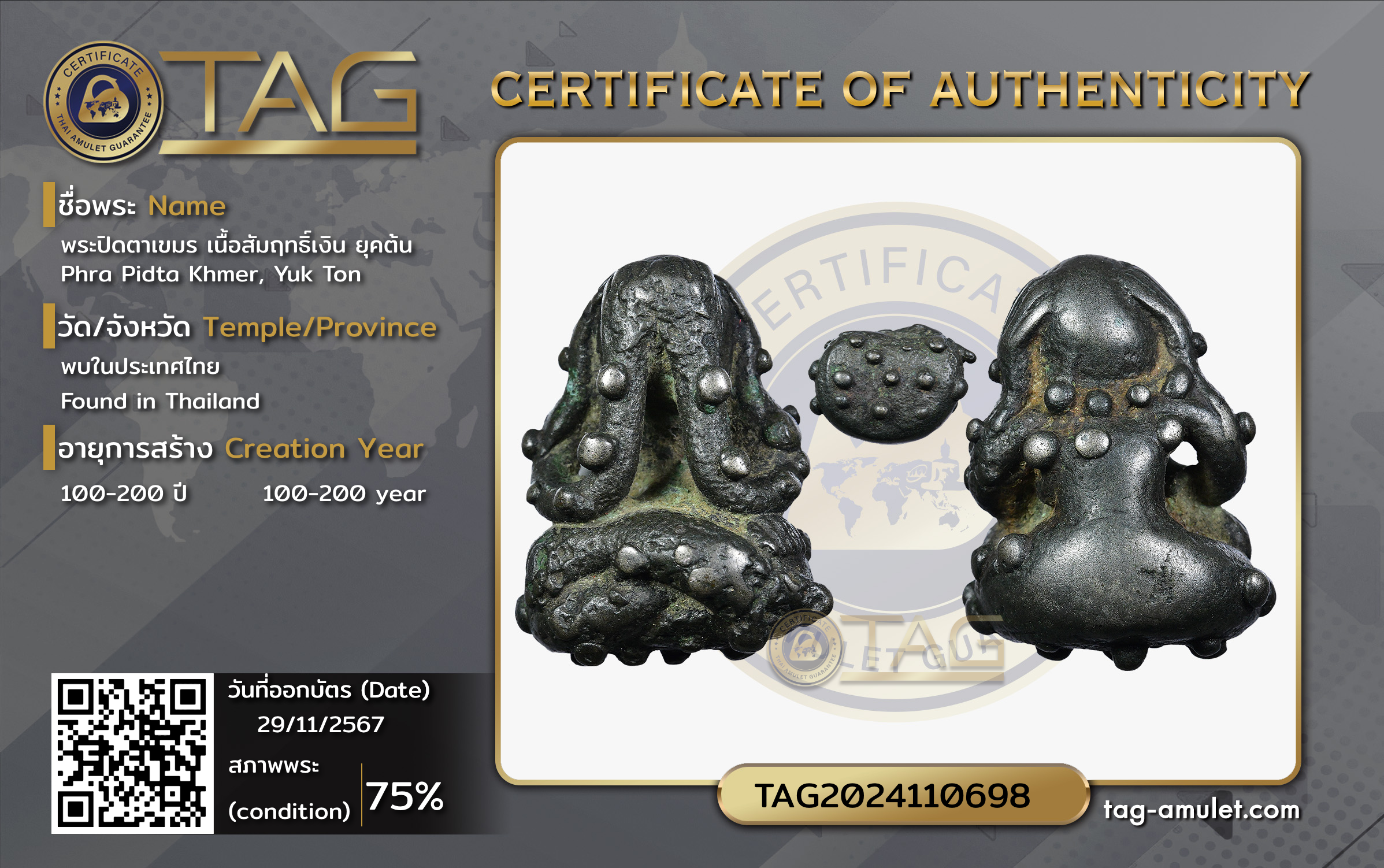 พระปิดตาเขมร เนื้อสัมฤทธิ์เงิน ยุคต้น ( พบในประเทศไทย 100-200 ปี )
