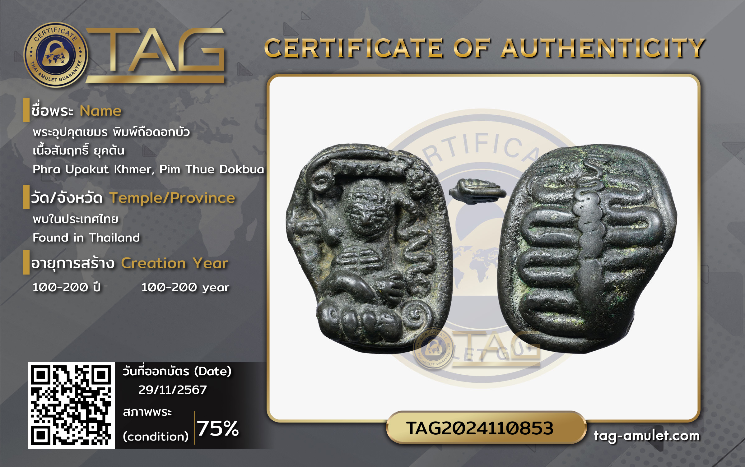 Thank you for reading this post, don't forget to subscribe! พระอุปคุต เขมร เป็นพระที่มีอายุการสร้างประมาณ 100 ถึง 200 ปีพุทธลักษณะ เป็นศิลปะแบบเขมร ในยุคต้นจะสร้างด้วยเนื้อสัมฤทธิ์แก่เงิน ผิวออกเทาอมดำ ยุคต่อมาสร้างด้วยสัมฤทธิ์ทอง สัมฤทธิ์ลงหิน พระอุปคุตทุกองค์ไม่ว่าจะสร้างขึ้นในสมัยใดก็ตาม จะไม่เหมือนกันเลยแม้แต่องค์เดียว