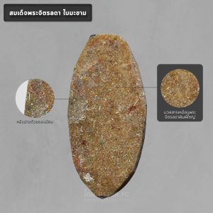ด้านหลังจะเห็นรอยปาดด้วยของมีคม มวลสารจะมีลักษณะเหมือนพระจิตรลดาพิมพ์ใหญ่ เนื้อพระจะมีฝองอากาศ