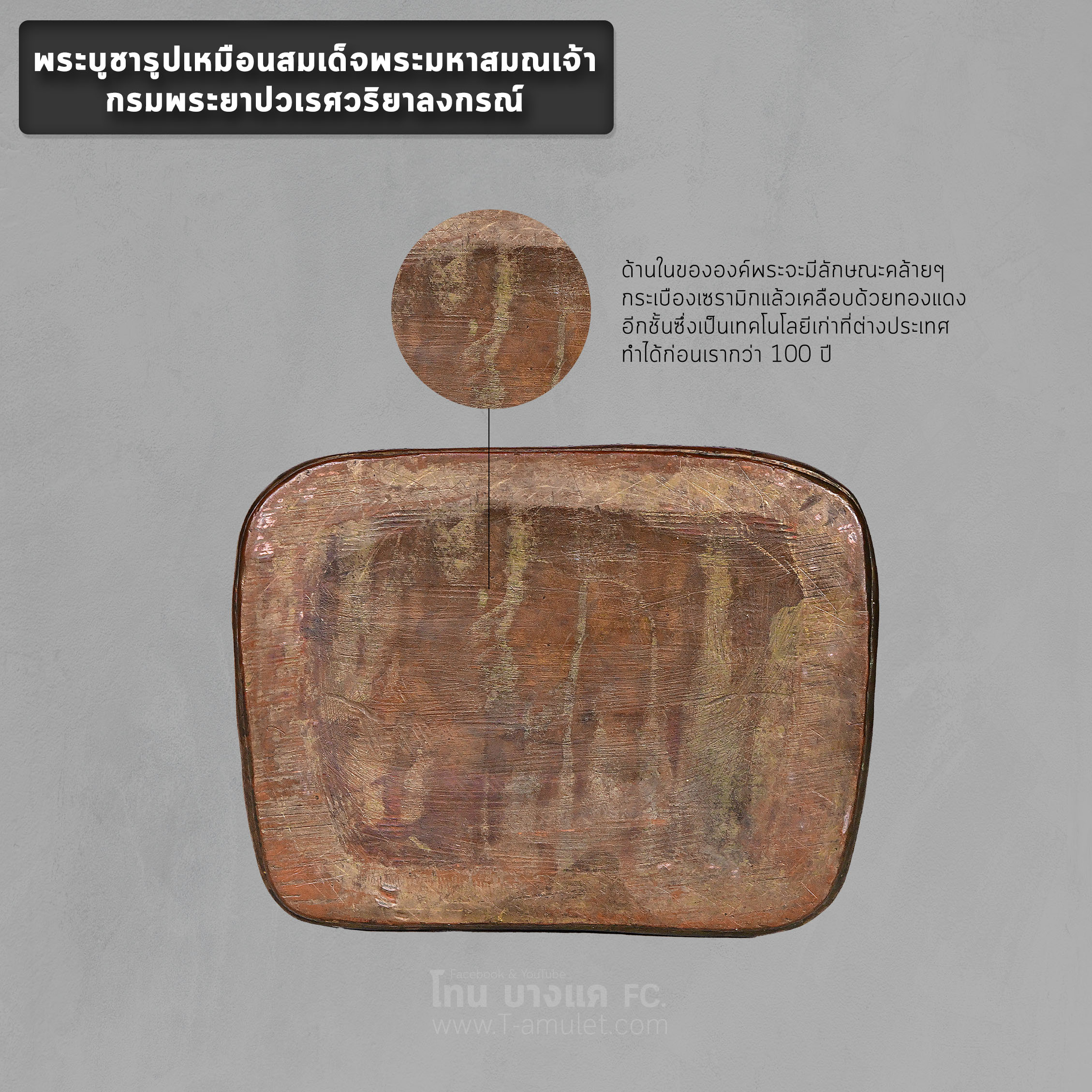 ด้านในขององค์พระจะมีลักษณะคล้ายๆ กระเบื้องเซรามิกแล้วเคลือบด้วยทองแดงอีกชั้นซึ่งเป็นเทคโนโลยีเก่าที่ต่างประเทศทำได้ก่อนเรากว่า 100 ปี