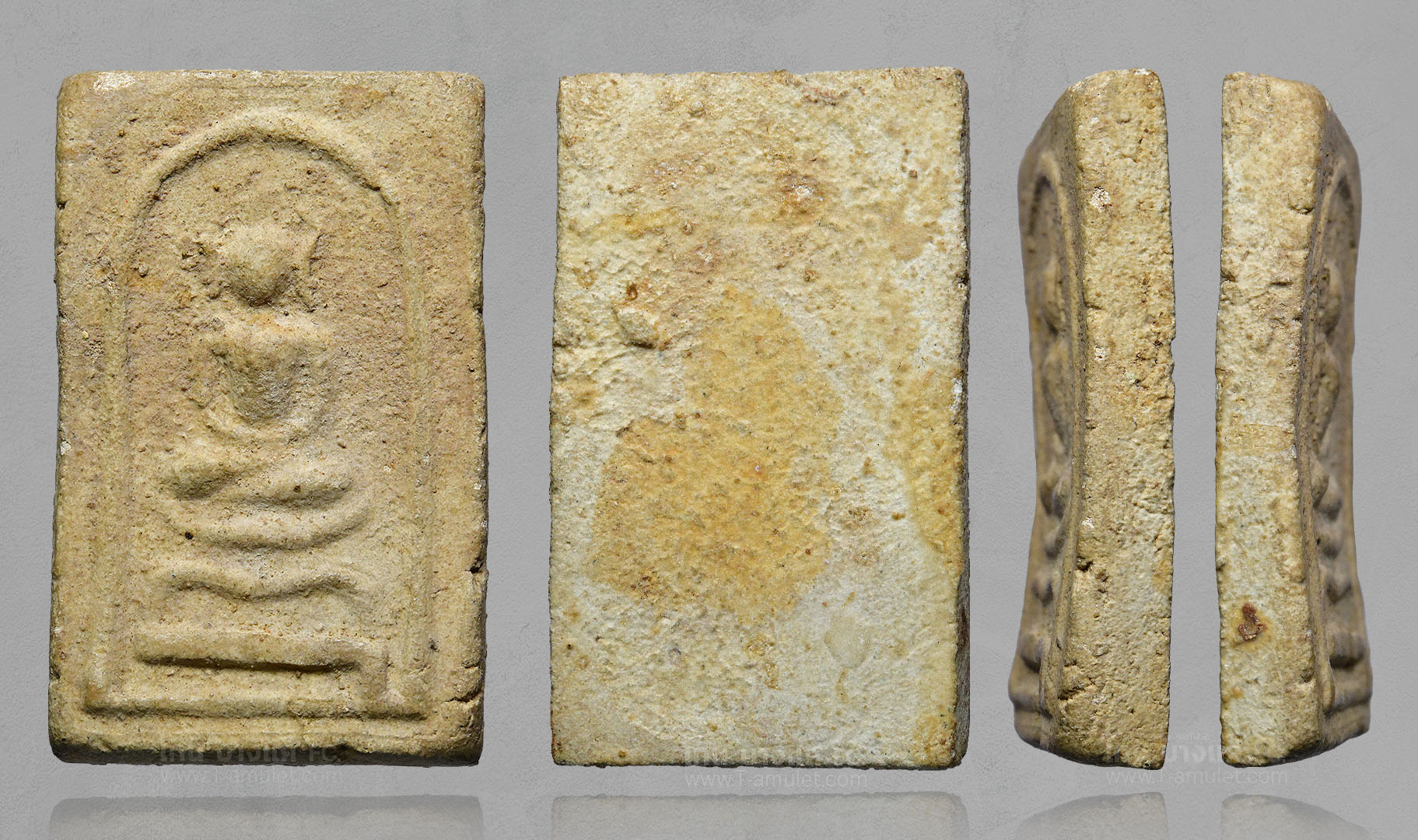 ด้านข้าง จะมีลักษณะขององค์พระช่วงบนและล่าง จะหนาๆ ช่วงกลางจะบางบิดโค้งเล็กน้อย มีคราบน้ำมนต์คล้ายฟองเต้าหู้อยู่บนเนื้อองค์พระ และจะมีเม็ดมวลสารสีดำกระจายทั่วองค์พระ