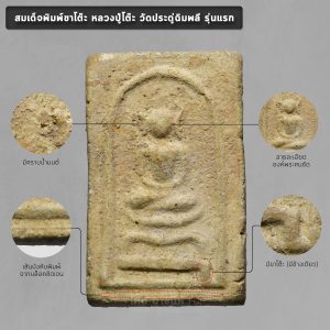 จำลักษณะพิมพ์ให้แม่น ใต้ฐานมีขาโต๊ะช้างเดียว ลายละเอียดขององค์พระคมชัดเจน สังเกตพื้นผิวจะมีคราบน้ำนมต์ ด้านล่างมีเส้นบังคับพิมพ์จากบล็อคชัดเจน