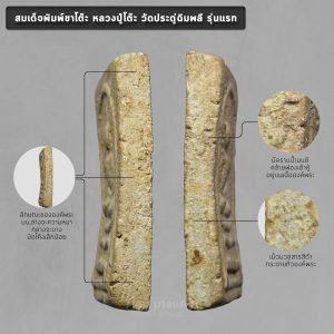บริเวณด้านหลังจะเป็นรอยยุบ เนื้อขององค์พระจะเป็นรอยย่นคล้ายตัวหนอน มีคราบน้ำมนต์คล้ายฟองเต้าหู้อยู่บนเนื้อองค์พระ และจะมีเม็ดมวลสารสีดำกระจายทั่วองค์พระ