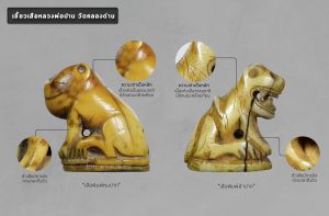 ด้านหลังสังเกตลักษณะหูชัดเจน หูต้องบาง เนื้อแห้งเป็นธรรมชาติมีลักษณะคล้ายเทียน บริเวณตัวเสือมีรอยจาร มีการขัดการเกลาทั้งตัว