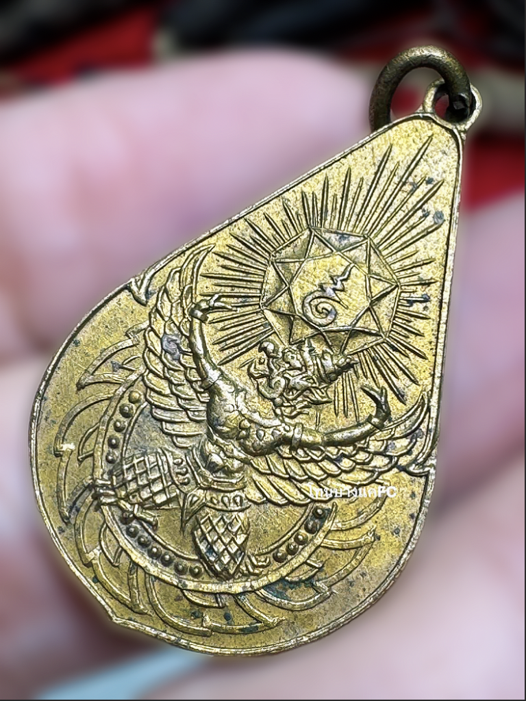 ✅ ด้านหน้าเป็นพญาครุฑกางปีก — สัญลักษณ์แห่งอำนาจ บารมี และความมั่นคง