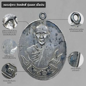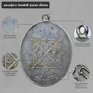 เหรียญหลวงปู่ขาว วัดหลักสี่รุ่นแรกเนื้อเงิน สังเกตุที่เปลือกตาตั้งเป็นสันคม ในตาขวามีเส้นขนแมวและมีเส้นซ้อนคมชัด