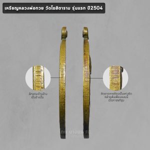เหรียญหลวงพ่อกวย วัดโฆสิตาราม รุ่นแรก ปี 2504 เมื่อหยิบเหรียญขึ้นมาก่อนอื่นเลยดูใบหน้า ใบหน้าต้องคมชัด จำใบหน้าให้แม่นๆ ตัวหนังสือเป็นแท่งคมชัด ที่คำว่า “โฆ” มีเส้นแตกคมเห็นชัดเจน สังฆาฏิเป็นแท่งคมชัด รายละเอียดต่างๆ คมชัด