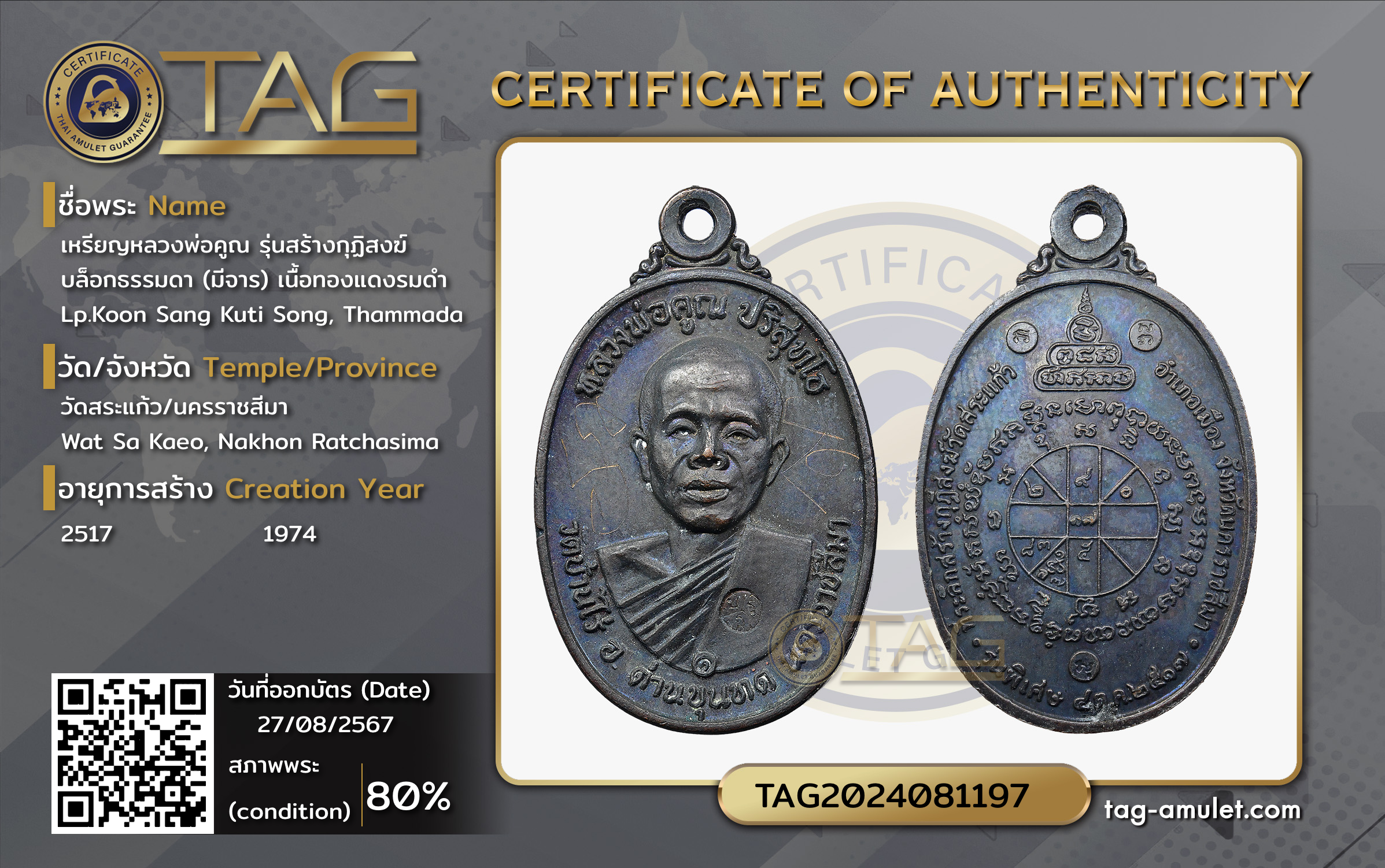 เหรียญหลวงพ่อคูณ ปี 2517 สร้างกุฏิสงฆ์วัดสระแก้ว ออกวัดสระแก้ว เนื้อทองแดง รมดำ