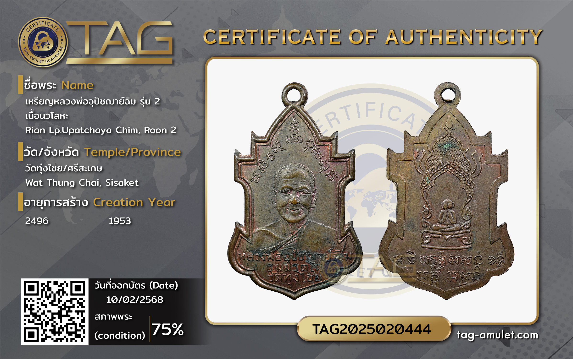 เหรียญหลวงพ่ออุปัชฌาย์ฉิม รุ่น 2 เนื้อนวโลหะ วัดทุ่งไชย จ.ศรีสะเกษ ปี 2496