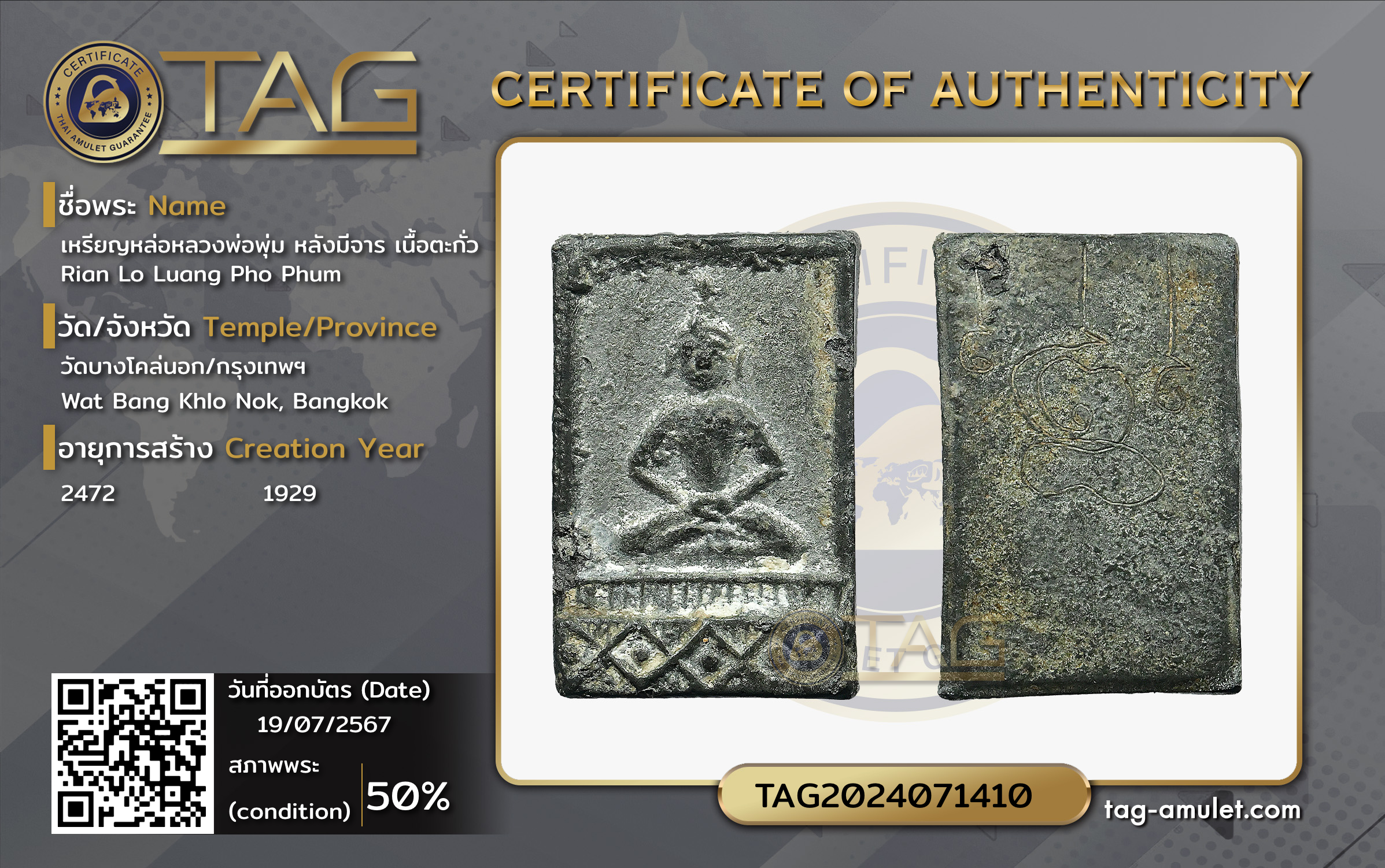 เหรียญหล่อหลวงพ่อพุ่ม หลังมีจาร เนื้อตะกั่ว วัดบางโคล่นอก กรุงเทพฯ ปี 2472