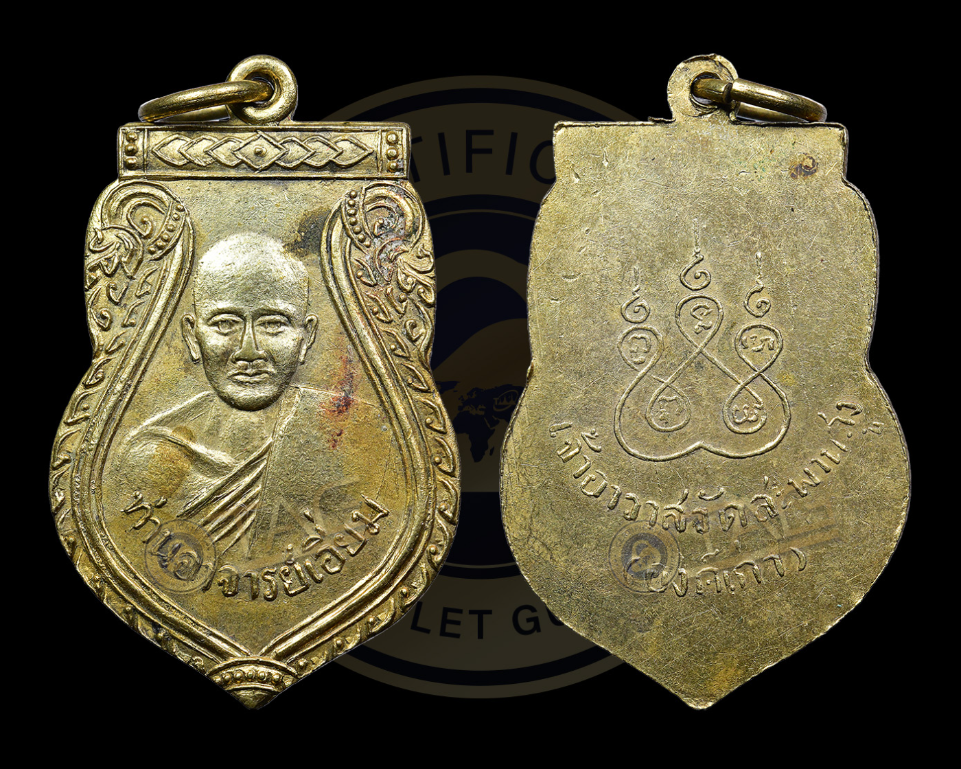 เหรียญเสมาหลวงปู่เอี่ยม บล็อคแรกเนื้อฝาบาตร กะไหล่ทอง