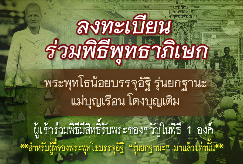 พร้อมส่งข้อความว่า “ลงทะเบียนร่วมพิธีพุทธาภิเษก”
